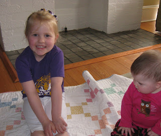 great food among the biggest) and one of them is getting off of work/school for the Mardi Gras "holiday." We decided to head up to Shreveport this year during our break to catch up with many of our old friends. Our first stop was to a double birthday party to celebrate King Hank Richard and Queen Audrey Welch as they turned 1! Aunt Katie came with us (she and I got to enjoy a very entertaining stroll along the parade route while Lucy slept in the stroller) and we all got to enjoy some king cake, jambalaya, and good beer.